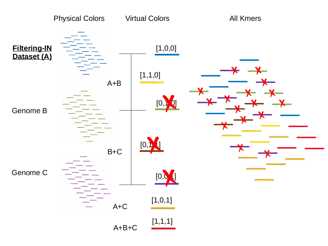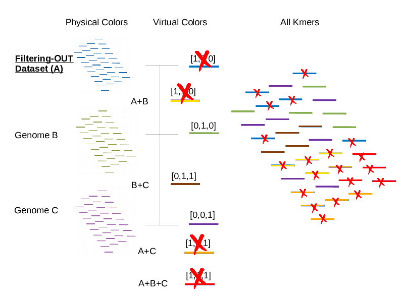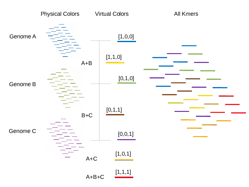 For each kmer virtual color, we increment counters for each pair of genomes contained in that virtual color.